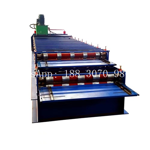 Stroj za valjanje trapezoidnih limova sastoji se od ručnog odmotača, vodilice za uvlačenje, stanice za oblikovanje s fiksnim položajem, opreme za rezanje, hidraulične stanice, PLC upravljačke konzole i stola za istovar proizvoda za ručno istovarivanje.